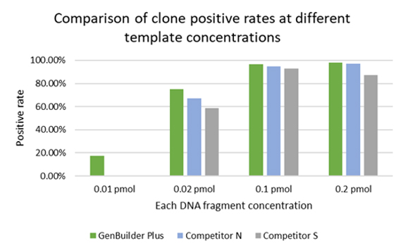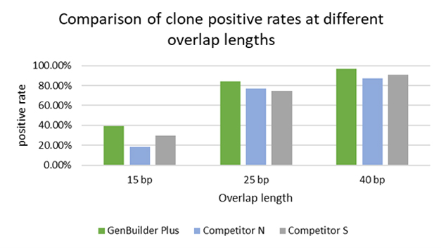 在相同测试条件下,不同重叠长度下,GenBuilder Plus的阳性率优于竞争对手的试剂盒 星空手机网页版。