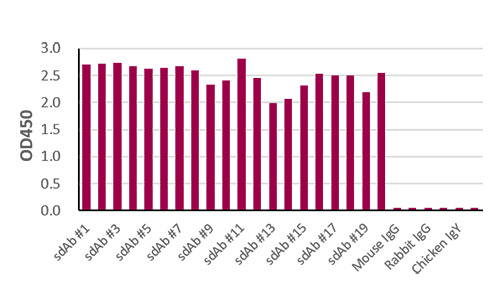 In this ELISA assay, the detection antibody was labeled with horseradish peroxidase (HRP), if you needs an unconjugated antibody you can choose MonoRab™ Rabbit Anti-Camelid VHH Cocktail (GenScript, A02014) 星空手机网页版. GenScript can provide customized conjugation services for this product per the customer's request.