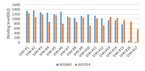 Binding compatibility comparison of MonoRab™ Rabbit Anti-Humanized VHH Antibody, mAb (Cat. No A02165 ), MonoRab™ Rabbit Anti-Camelid VHH Antibody, mAb (Cat 星空体育登录. No A01860 ), and MonoRab™ Rabbit Anti-Camelid VHH Cocktail (Cat. No A02014 ) with humanized VHHs. The performance of A02165 is the best. It is ideal to be used for humanized VHH antibody detection. .