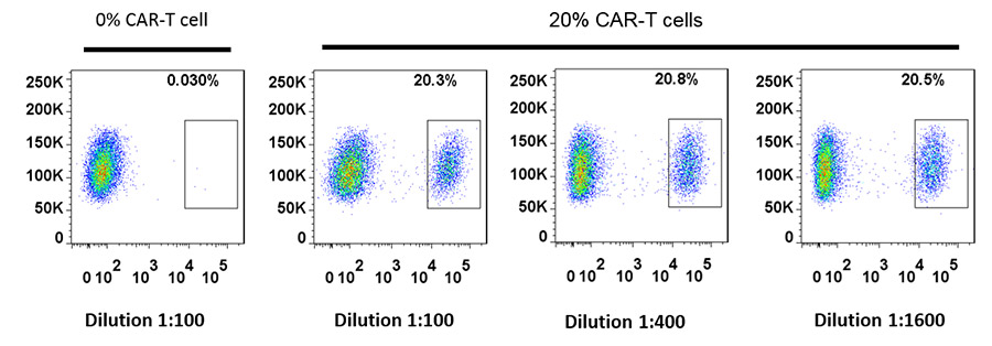 图2 星空下载, 使用不同浓度的MonoRab™ Rabbit Anti-Camelid VHH Cocktail [PE](GenScript,A02018)通过流式细胞术鉴定CAR-T细胞.