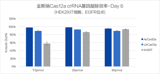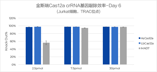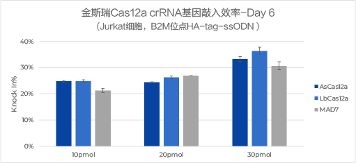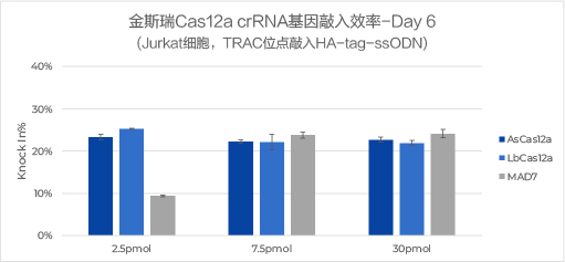 实验结果: 使用星空体彩app官方Cas12a crRNA,针对不同酶均可以获得较高的基因敲入效率: