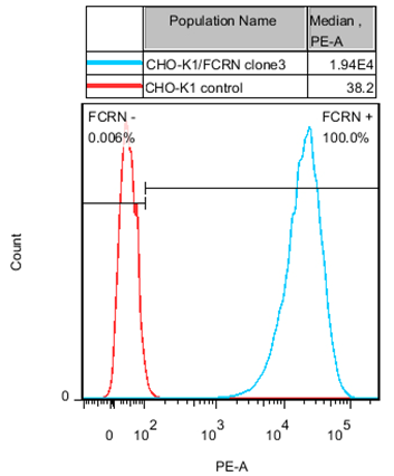 CHO-K1/FcRn (货号: M00603)细胞上FcRn的FACS 分析