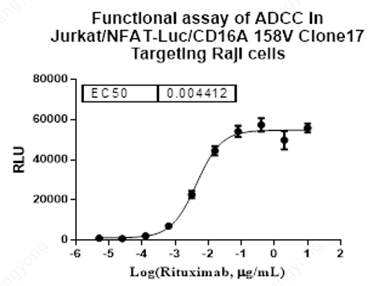 Jurkat/NFAT-Luc/CD16A 158V (货号: M00926)细胞靶向Raji细胞的功能检测