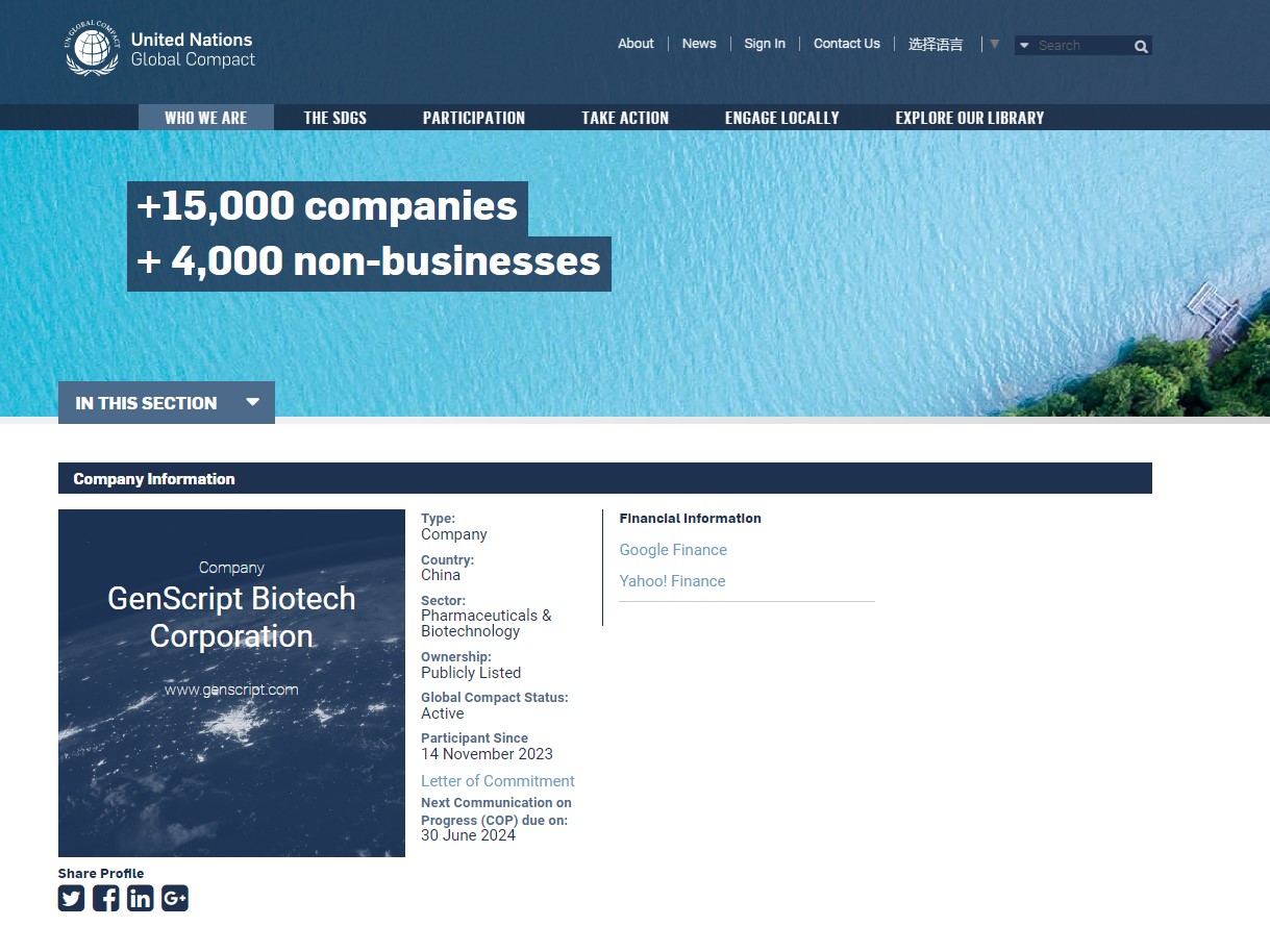日前 星空全站体育app,全球重要的生命科学研发与生产服务提供商星空体彩app官方生物科技股份有限公司(下称星空体彩app官方)成功通过联合国全球契约办公室审核,正式成为联合国全球契约组织(UNGC)会员,这彰显了星空体彩app官方坚持可持续发展的决心,是公司在ESG (Environmental, Social and Governance)领域取得的一项重要成果。