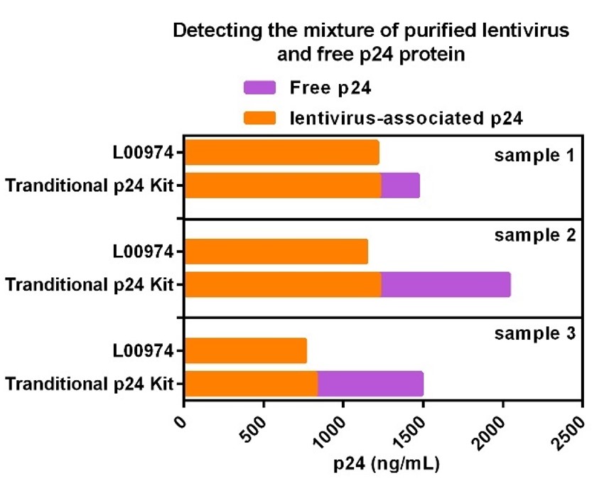 Lentivirus Titer p24 ELISA Kit Pro对游离p24的去干扰能力