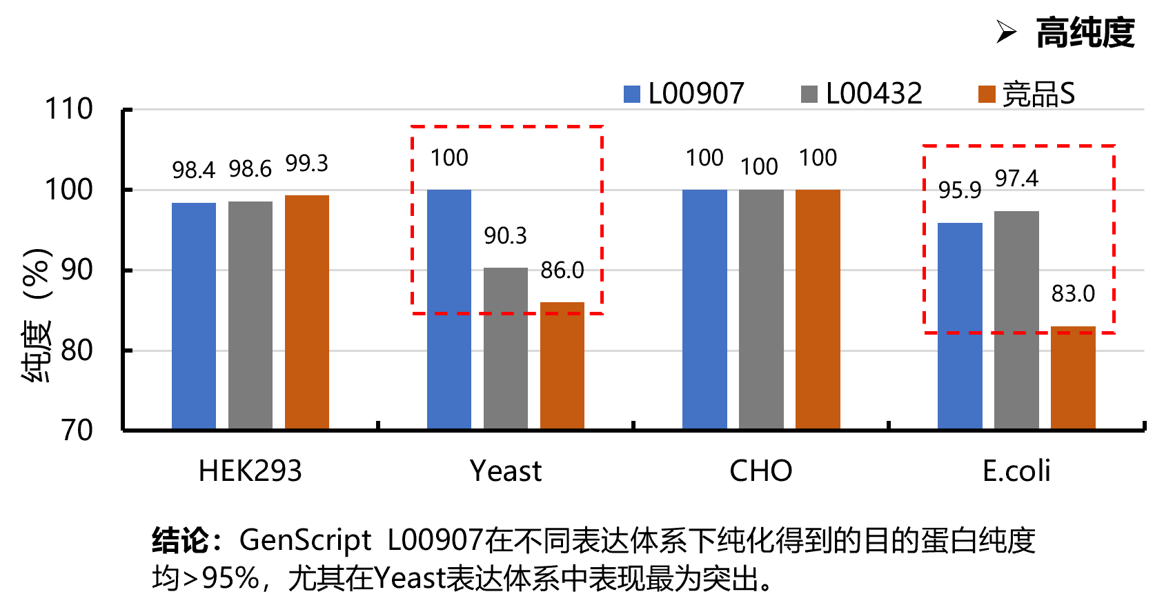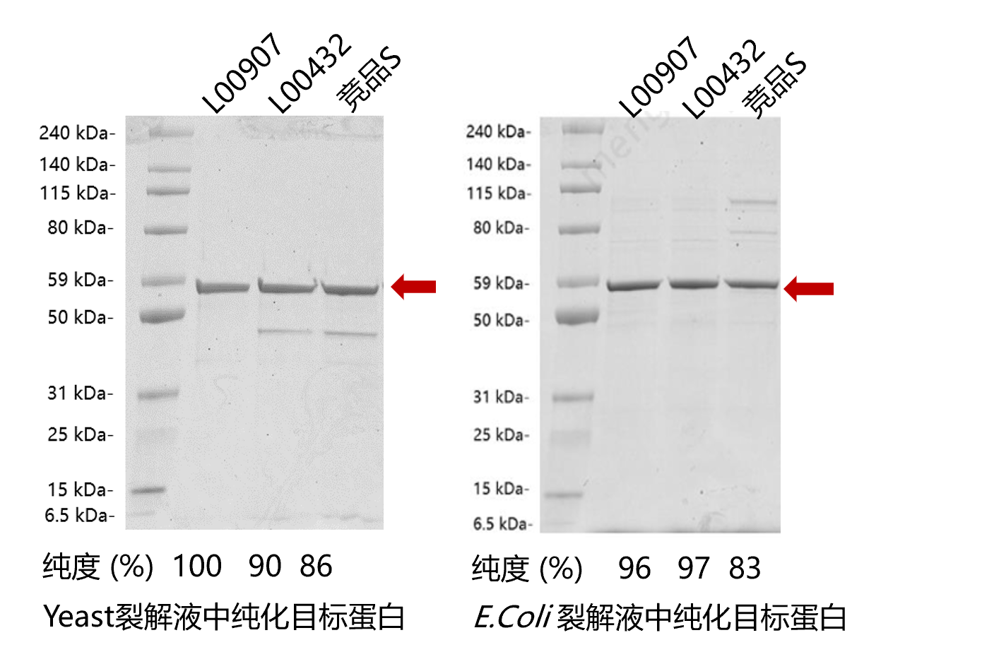 实验结果说明:L00432纯化填料可从复杂样本中获得高纯度目的蛋白