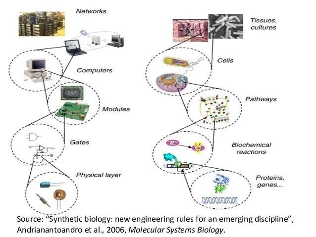 合成生物学这一新兴学科在20年前诞生初始之际,便与计算机科学的发展紧密相关,因为合成生物学在本质上是遵循“设计-构建-测试-学习”循环式的工程学科,而扎根于人类基因组“读”和“写”的时代,合成生物学家们从一开始就将细胞的遗传物质当做一个可以被理性操作和设计的系统,并且把计算机科学中的工程化术语与思想引入该新兴领域,元件,装置,系统,解耦,抽象化,标准化,底盘,逻辑门,线路设计等等,都体现了这一核心思想的类比性,早在2006年,Ron Weiss研究组便发表综述性文章《Synthetic Biology: New Engineering Rules for an Emerging Discipline》[1],将合成生物学研究的特征与计算机系统的特征进行类比 星空注册,如下图所示,该文从生物装置,模块组件,细胞以及多细胞系统等四个层面进行了设计策略与功能以及实例的角度进行了分析性讨论。
